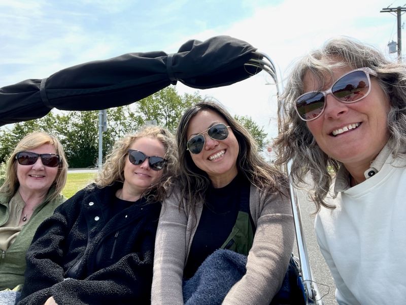 L-R: Sharon (JBCP outreach worker), Joelle (CCV outreach worker), Mary (JBCP Executive Director) and Melaina (Pedicab driver).